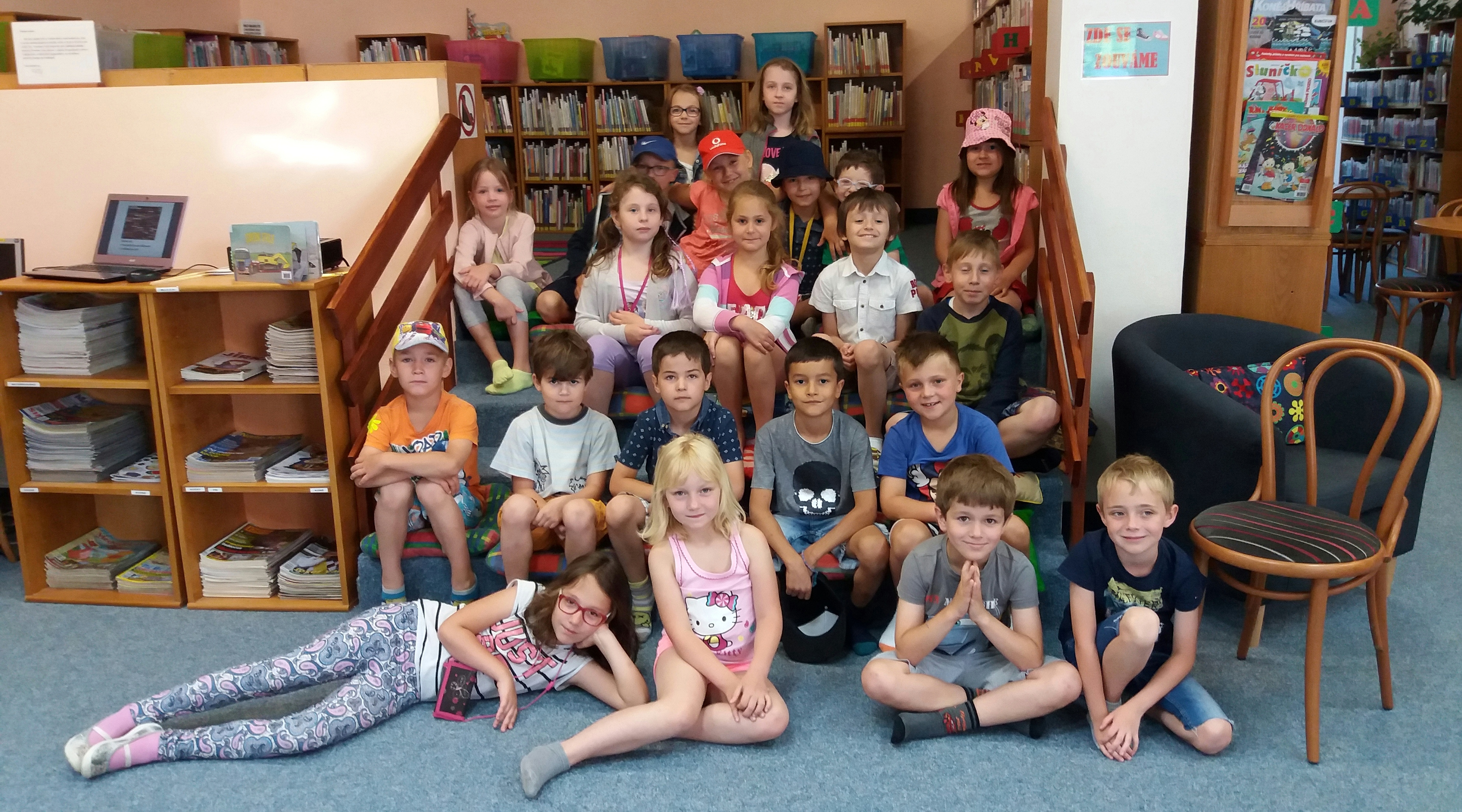 Pondělí 19. 6.: KNIHOVNA ŘÍČANY Žáci předvedli paní knihovnici, jak krásně, plynule a s porozuměním dokážou na konci první třídy číst. Dále se zde seznámili s fungováním knihovny, mohli si půjčit jakoukoli knihu a nahlédnout do ní.