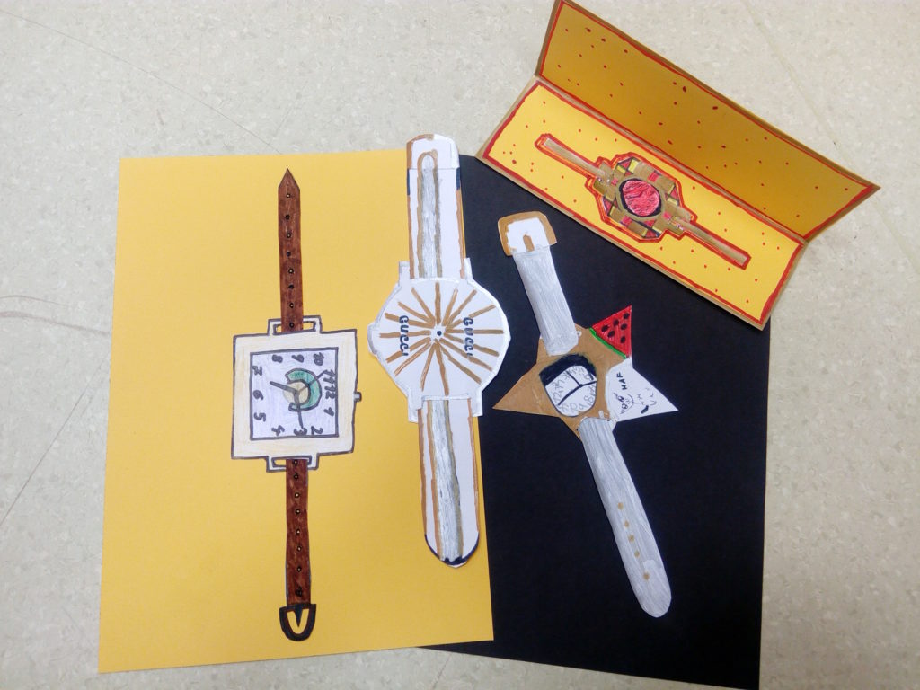 Úkolem bylo vytvořit zajímavý design hodinek. Velmi zdařilých návrhů bylo mnoho. Děti tedy hlasovaly, které výtvory budou třídu reprezentovat. Vybraly práci Filipa Nového, Petra Balabána, Adama Průši a paní učitelka zvolila hvězdné hodinky Terezky Frankovičové.