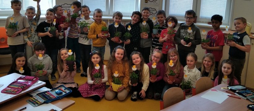 Děti z I. A v pondělí 21. března 2022 oslavily příchod jara projektovým dnem. Každý měl za úkol přinést do školy věc, která má symbolizovat jaro. Třídu nám ozdobili zajíčci, tulipány, prvosenky, větvičky, kuřátka a