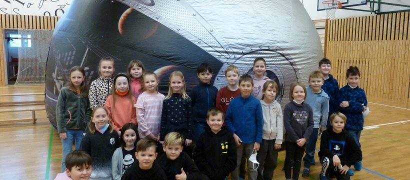 V měsíci březnu 2022 měli žáci naší školy možnost zažít výukový program v planetáriu a nemuseli kvůli tomu nikam jezdit. Mobilní planetárium totiž přijelo za námi. Po čtyři dny ho vždy na celou dobu vyučování