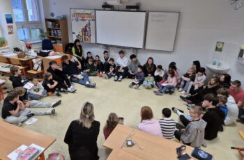 Žáci IX. C si v prvním únorovém týdnu připravili pro prvňáčky ze třídy I. A příjemné čtenářské setkání. Po tvořivém seznámení jim z vlastních knížek předčítali