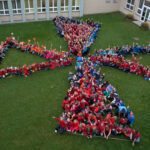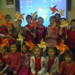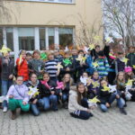 Během velké přestávky se všichni přítomní žáci a zaměstnanci školy shromáždili v prostoru před školou a vytvořili obrazec větrníku. Společná fotografie se velmi povedla a bude zaslána do soutěže vyhlášené Klubem nemocných cystickou fibrózou. Obrázky budou zveřejněny na jejich webových stránkách a jeden bude vylosován. Výherce pak obdrží dárek od patrona Ivana Trojana.