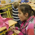 Pak se žáci pustili do výroby papírových a plastových větrníků. Velké překvapení si přichystala žákyně z deváté třídy, která přinesla do školy větrníky vlastnoručně upečené.
