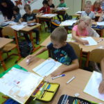 Děti mají za sebou první týdny školy a stávají se z nich už ostřílení školáci, kteří si umí poradit se spoustou věcí. Začínají číst a zapisovat první písmenka, počítají, staví, malují, vyrábějí, cvičí, zpívají, dovádějí při různých hrách. Je toho opravdu hodně, co musí zvládnout malý prvňáček, ale všichni se moc snaží. Zvyknout si na nová pravidla, naučit se naslouchat, když mluví paní učitelka nebo kamarád, je pro některé snad úplně nejtěžší. Postupně se to však všichni naučí, stejně jako být jedna parta, kde všichni táhnou za jeden provaz.