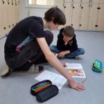 Druhou dílnu čtení připravila pro děti paní učitelka Ilona Kaplanová. Prvňáčkům dala za úkol, aby si na ni přinesli svoji rozečtenou knihu a představili ji „svým“ deváťákům. Malí i velcí čtenáři se velice těšili, až společně zasednou ke knížkám a přenesou se tak do kouzelného světa fantazie. Paní učitelka dětem sdělila, co je během druhé dílny čtení čeká, ukázala všem pracovní listy a motivovala děti k tomu, aby si společné chvilky náležitě užily. To se také podařilo. Při společném sdílení děti nadšeně mluvily o tom, jak je společné čtení bavilo a jak bez problémů zvládly vypracovat i čtenářský list. Ten byl tentokráte zaměřen na prostředí, ve kterém se příběhy odehrávaly. Deváťáci byli překvapeni, jak prvňáčci již velmi dobře čtou.