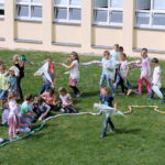 Všechna oddělení školní družiny a třída VI. A si ke Dni Země (22. 4.) připravila společný projekt – zeměkouli obtočenou dlouhatánskou housenkou.