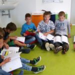 Ve školním roce 2017/2018 třída II. B měla každý čtvrtek hodinu dílen čtení. Během těchto hodin jsme trénovali čtení s porozuměním a plnili následné úkoly (namaluj obrázek, vyhledej odpověď na otázku, vypiš postavy atd.). Realizovali jsme  i několik projektů společně s II. A – např. „Autor a ilustrátor dětských knih“, kdy si děti navzájem formou referátu sdělovaly faktografické údaje o autorech, ilustrátorech a knihách. Také jsme trénovali čtenářské strategie: shrnování, vyjasňování, předvídání a kladení otázek. Hodina dílen čtení vždy končila dvaceti minutami tichého čtení.