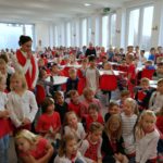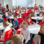 Vrcholem školních oslav 100. výročí republiky bylo slavnostní shromáždění všech žáků ve školní jídelně, kterého se zúčastnil i pan starosta Bohumil Řehák a pan místostarosta Petr Beneš. Po české a slovenské hymně a projevech zazpívali žáci nejoblíbenější píseň prvního československého prezidenta T. G. Masaryka „Ach synku, synku“, na programu nemohla chybět píseň Karla Hašlera „Ta naše písnička česká“. Pomyslným hudebním vrcholem bylo v samém závěru pěvecké sólo žákyně 5. ročníku Alžběty Kubátové s písní Jaroslava Uhlíře a Zdeňka Svěráka „Chválím Tě, země má“, ke kterému se s chutí připojili i ostatní žáci.