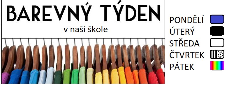 Pojďme oživit školní oblékání! Na každý den v tomto týdnu je vybrána jedna barevná kombinace, ve které přijdeme oblečeni do školy. Každý den bude ve znamení určité barvy. A jaké barvy si máte připravit?
