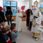 Mikuláš v biskupském oděvu s dlouhým bílým vousem doprovázený čerty a anděly zavítal do všech tříd 1. až 3. ročníku a neopomněl se ukázat i v průhonické mateřské škole, ve školní kuchyni a rovněž na obecním úřadu.