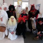 V letošním roce se nadpřirozených rolí poprvé ujali členové vedení školy v čele s paní ředitelkou Santolíkovou Štorkovou, která báječně sehrála roli čertice. Poděkování patří i 3 žákům 9. ročníku – Lukáši Bonovi, Matyáši Kaletovi a Petru Rychlému, kteří družinu doplnili.