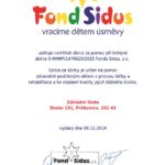Na konto Fondu Sidus se podařilo vybrat a odeslat 1 500 Kč. Certifikát o účasti na této veřejné sbírce nám byl zaslán jako projev poděkování.