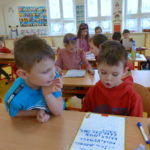 V pátek dne 21. února 2020 nás navštívily děti z průhonické mateřské školy. Devatenáct předškoláků se přišlo podívat na své o rok starší kamarády, aby viděli, jak to vypadá v 1. třídě. Pro většinu z nich to znamenalo úplně poprvé zasednout do školních lavic a vyzkoušet si školní vyučování. Část z nich byla na hodině prvouky, další na hodině čtení a psaní. Prvňáčci jim i paním učitelkám ze školky pyšně předvedli, co všechno se už od začátku školního roku naučili. Předškoláci všechno pozorně sledovali, do mnoha činností se zapojili, a dokonce prvňákům pomáhali s plněním některých úkolů. Po skončení hodiny bylo na všech vidět, že se jim u nás ve škole opravdu líbilo. S většinou z nich se uvidíme v dubnu u zápisu.