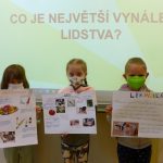 Děti z II. C četly v čítance zajímavé příběhy o lidských vynálezech a toto téma je velmi zaujalo. Položili jsme si otázku, co je největší vynález lidstva. Záhy jsme zjistili, že odpověď nebude vůbec jednoduchá. Rozpoutala se bouřlivá debata, kde děti obhajovaly své osobní kandidáty na největší vynález. Bylo zajímavé sledovat, jak už v tomto věku dokážou někteří přemýšlet v souvislostech a uvědomují si význam věcí kolem nás, některé argumenty byly velmi přesvědčivé.