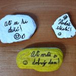 Od září se necháváme denně inspirovat k hezkým činům Laskavým kalendářem a děti z III. C tak denně dělají malé dobré skutky. Šíří tak laskavost ve škole i doma. Na sobotu 13. listopadu si děti vymyslely, že potěší náhodné nálezce milými a povzbuzujícími vzkazy na malovaných kamíncích. S malováním kamenů už měly děti dřívější zkušenost, tak se hlavně zaměřily na to, co by lidem udělalo největší radost, kdyby si na nalezeném kamínku přečetli. Vybrali jsme společně 8 vzkazů a ty děti na barevné kamínky psaly a dozdobily je pak malými obrázky. Práce nás moc bavila, každý vyzdobil kamínků hned několik. Protože jsme z různých obcí, dohodli jsme se, že v sobotu každý umístí kameny někde v blízkosti svého bydliště nebo na nějakém rodinném výletě. I když nám plány překazila páteční karanténa některých dětí, rodiče jim s dokončením projektu pomohli a kameny rozmístili za ně.