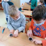 V pracovních činnostech vyrobily jednoduchou ptačí potravu ze semen a loje. Mlsání pro štěbetálky rozvěsily na školní zahradě do keřů.