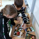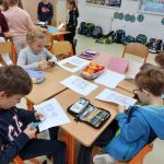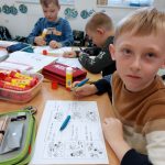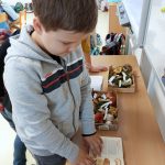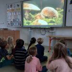 Děti si potom vytvořily svůj atlas hub na kreativním stanovišti. V centu tvůrčího psaní sestavovaly podle obrázkové osnovy příběh rodinky, která vyrazila na houby. V badatelské části prozkoumaly tělo houby a její části. Děti překvapilo, že houby nemají nožičku, ale třeň. V příběhu o tom, jak se chovat v lese k nejedlým houbám, hledali žáčci druhy vět. Toto téma jsme propojili s českým jazykem. Nesmělo chybět i stanoviště s matematikou. Správný houbař si musí umět přepočítat svůj „úlovek“.
