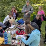 V Průhonickém parku se sedmáci se vší vervou vrhli na schovávání a hledání pokladů, nezalekli se ani překážek v podobě zavázaných očí či jinak záměrně ztížené orientace v prostoru.