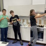 Mnoho kilometrů v nohách jim přesto nevzalo síly a plni elánu se ve školní kuchyňce pustili do vaření večeře. Každá skupinka si předem zvolila své menu, nakoupila suroviny, uvařila a dobře pohostila nejen sebe, ale i paní učitelku třídní a pana Plavce. Jedno jídlo bylo lepší než druhé, mohli jsme ochutnat špagety, zeleninový salát s kuřecím masem, pizza šneky i vynikající lívance. Úklid kuchyně nebyl pro žáky problém, a tak se časně po večeři celá třída opět vrhla na hraní kolektivních her. Nechybělo pantomimické předvádění spolužáků, uvolnění se ze svázání provazem či soutěž v lezení v zapnutém spacáku. O zábavu, napětí i mohutné povzbuzování nebyla nouze.
