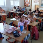 Postupně si osvojili režim v jídelně, jak se chovat, naučili se nosit tác jako ostatní spolužáci. Starší žáci si během září vytvořili pravidla, která se snaží dodržovat. V odděleních se také vyrábělo a povídalo na téma „Voda“. Pro upevnění příjemného klima v odděleních si zahráli hry: ,,Ledolamky“