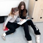 Deváťáci měli za úkol si přinést oblíbenou knížku z raného školního věku, ze které prvňáčkům předčítali. Každý z deváťáků měl na starosti jednoho či dva prvňáčky.
