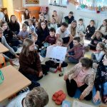 Na počátku byla na obou stranách patrná mírná nervozita, která však po prvních minutách společného poznávání zcela odezněla. Jakmile si skupinky našli svůj čtenářský koutek v různých částech školy, zabraly se do společné práce. Po přečtení vybrané části knihy, společně vyplňovali pracovní list a v závěru jej ve velkém kruhu ve třídě prezentovali.