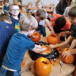 Obec Průhonice dodala do školy několik dýní, ze kterých také vznikly lucerny, a společně s našimi výrobky posloužily k výzdobě náměstí a parku při lampionovém průvodu konaném dne 31. října. Velmi nás těší, že jsme i my mohli přiložit ruce k dílu.