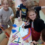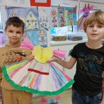 Poté, co děti nastudovaly lidové motivy a vzory, vytvořily návrhy na ženský i mužský kroj.