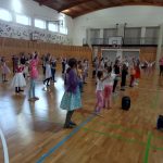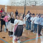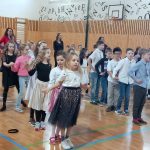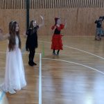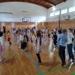 V 13.30 hodin se tělocvična proměnila v taneční sál. Žáci ze všech oddělení zatančili za doprovodu zpěvu mazurku.
