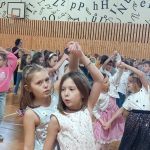 Oficiality byly ukončeny a na řadu přišel tanec. Na moderní hudbu tančili skoro všichni žáci a pořádně se při tom zapotili. Po celou hodinu je skvěle vedla lektorka z projektu Dětský muzikál.