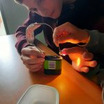 Dalším krokem v tomto pokusu je zapojení žárovky přes další součástku – vodič z různého materiálu. Žáci sami zkouší, zda je vodivé dřevo, železo, měď, hliník, cín či mosaz. Někteří žáci zkonstruovali nápadité elektrické obvody.
