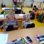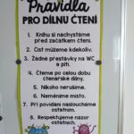 Děti z II. A, které se teprve minulý školní rok staly čtenáři, zvládly už v 1. ročníku společně přečíst dvě knihy ze školní knihovny. Lucka Luciperka Ivony Březinové a Alenčina čítanka Eduarda Petišky je provázely v hodinách čtení od prosince do června. I díky nim si děti vyzkoušely své první dílny čtení, ve kterých teď pokračují pravidelně. Dílna čtení má ve 2. ročníku již své pevné místo v rozvrhu hodin. Žáci si na ni nyní nosí své vlastní knížky, ze kterých si čtou i doma. Na začátku září jsme si společně vytvořili i pravidla dílny čtení, díky nimž mají všichni při individuálním tichém čtení klid na soustředění a při společné reflexi a prezentaci se učí naslouchat dalším dětem a respektovat názory ostatních.
