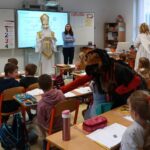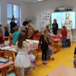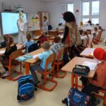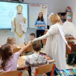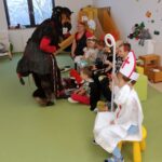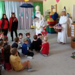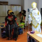 V úterý dne 5. prosince 2023 jsme si na naší škole připomněli adventní tradici, dle které svatý Mikuláš sestupuje každý rok v předvečer svého svátku z nebe na zem, obchází lidské příbytky a spolu s čertem a andělem rozdává pamlsky a ovoce hodným dětem stejně jako uhlí a brambory dětem zlobivým.