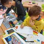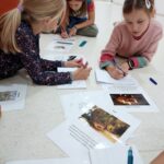 V centru ateliér byla jasná volba vytvořit společně betlém. Nejprve se děti seznámily s různými druhy betlémů….dřevěnými, skleněnými, Ladovým betlémem. Samy se pak pustily do tvorby jednotlivých postav.