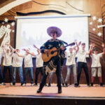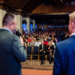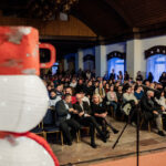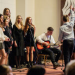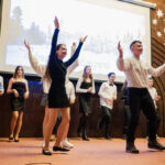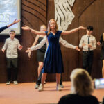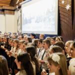 V kongresovém sálu hotelu Floret se v úterý dne 12. prosince 2023 konalo tradiční vánoční vystoupení žáků a učitelů naší školy. Předcházelo mu pilné nacvičování jednotlivých ročníků zakončené generální zkouškou, která proběhla den před samotným vystoupením. Jako minulý rok jsme museli uspořádat dva programy za sebou, protože bez rozdělení diváků na dvě poloviny bychom se do sálu vůbec nevešli. Příprava a organizace byla náročná, protože se na pódiu večer vystřídalo okolo 500 účinkujících, kteří připravili představení pro více než 700 diváků!
