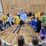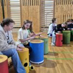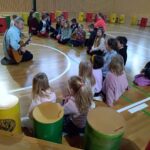 Ve středu dne 6. března 2024 navštívil naši školu hudebník Zdeněk Roller, autor drumbenu, s programem společného bubnování. Originální rytmické techniky zaměřené na komunikaci a spolupráci, ale také zpěv, tanec a hra lektora na různé hudební nástroje, úplně pohltily všechny zúčastněné děti i pedagogy. Každý žák měl svůj nástroj (drumben) a všichni si společně vyzkoušeli zabubnovat v různých rytmech Afriky, Austrálie či Evropy. Dětem se z tělocvičny vůbec nechtělo a hodnotily program jako skvělý.