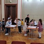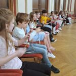Obě dvě druhé třídy se na konci května vypravily do sídla České filharmonie, do Rudolfina. Paní učitelky pro ně objednaly workshop Dopoledne s filharmoniky, Čáry máry dirigent.