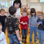 Na závěr si děti z prvních tříd připravily malé překvapení – vlastnoručně vyrobené dárečky, které s radostí předaly dětem ze školky.