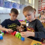 Prvňáčci pak předvedli, co se ve škole od září naučili. Přečetli dětem ukázku ze slabikáře a poté se všichni zapojili do různých aktivit. Společně stavěli stavby z kostek, řešili jednoduché matematické úlohy. Školáci jim ochotně pomáhali.