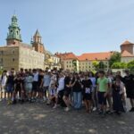 Druhý den, po vydatné snídani, čekal účastníky exkurze přejezd do Krakova, jednoho z nejkrásnějších a historicky nejvýznamnějších měst Polska. První zastávkou se stala socha Wawelského draka, kde se žáci seznámili s místní legendou. Dále navštívili kostel sv. Bernardina s monumentální barokní výzdobou a vystoupali na hradní návrší Wawel, odkud se naskýtaly krásné výhledy na město a řeku Vislu.