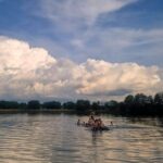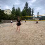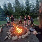 Areál nabízel spoustu možností k zábavě. Hned první odpoledne jsme se rozdělili do skupin a šli si zahrát fotbal, volejbal, ping-pong nebo vyzkoušet velkou nafukovací trampolínu. V horkém počasí byla oblíbená také voda – někteří si půjčili paddleboardy nebo kánoe a užívali si parádní letní atmosféru.