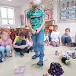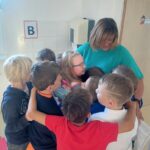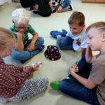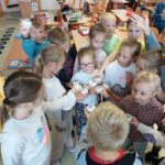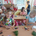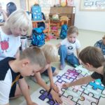 Následující dny se sypaly jako korále. Děti si vzájemně povídaly o prázdninových zážitcích nad suvenýry z různých koutů světa. Statisticky zaznamenaly pomocí kelímků a fazolek, co kdo zažil. Seznámily se s třídní hrou a se skřítky, kteří je budou celý rok provázet. V lese i ve třídě pro trpaslíky postavily domečky. Společně vytvořily velký barevný obraz, který je důkazem, že společně tvoří jeden celek.