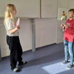 Žáci šestého ročníku se ve dvojicích pustili do realizace komunikačního cvičení, jehož cílem byla tvořivost, smysluplné souvislé vypravování příběhu a hlavně obrovská spolupráce a naslouchání jeden druhému, neboť si na počátku zadání své partnery nevybrali dobrovolně, ale vylosovali.