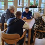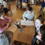 Povídali jsme si o Vánocích a vánočních vzpomínkách, které v mnohých probudily silné emoce. Následovalo tvoření obrázků s vánoční tematikou, na které děti ve spolupráci se seniory zapisovaly svá přání a vzpomínky. Obrázky si pak žáci odnesli jako krásnou památku na společně strávené dopoledne. Program pokračoval kvízem na téma Vánoce u nás a v Evropě.  Odměnou pro všechny zúčastněné byl malý dárek, andílek pro štěstí, vytištěný na 3D tiskárně naším žákem Denisem, doplněný o sladkou drobnost. Radost seniorů byla upřímná a nakažlivá.