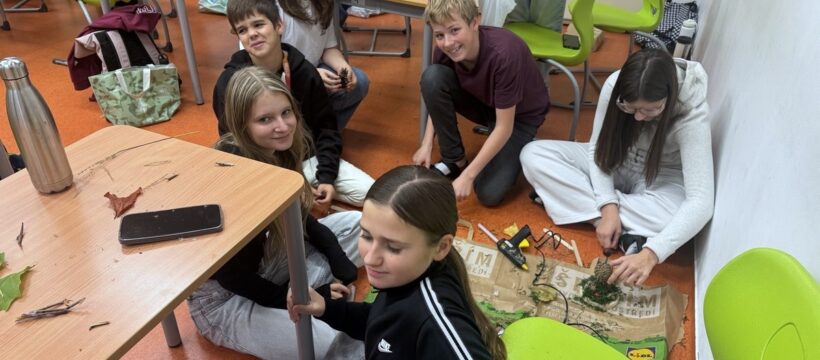 V hodinách praktických činností se žáci VII. C pustili do tvoření z přírodních materiálů. Cílem bylo probudit fantazii, rozvíjet jemnou motoriku a naučit se využívat to, co nám nabízí příroda. Žáci si přinesli různé přírodniny